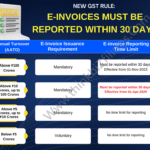 ✔ Businesses with turnover above ₹100 crore must report e-invoices within 30 days on the Invoice Registration Portal (IRP) (effective 1st May 2025).